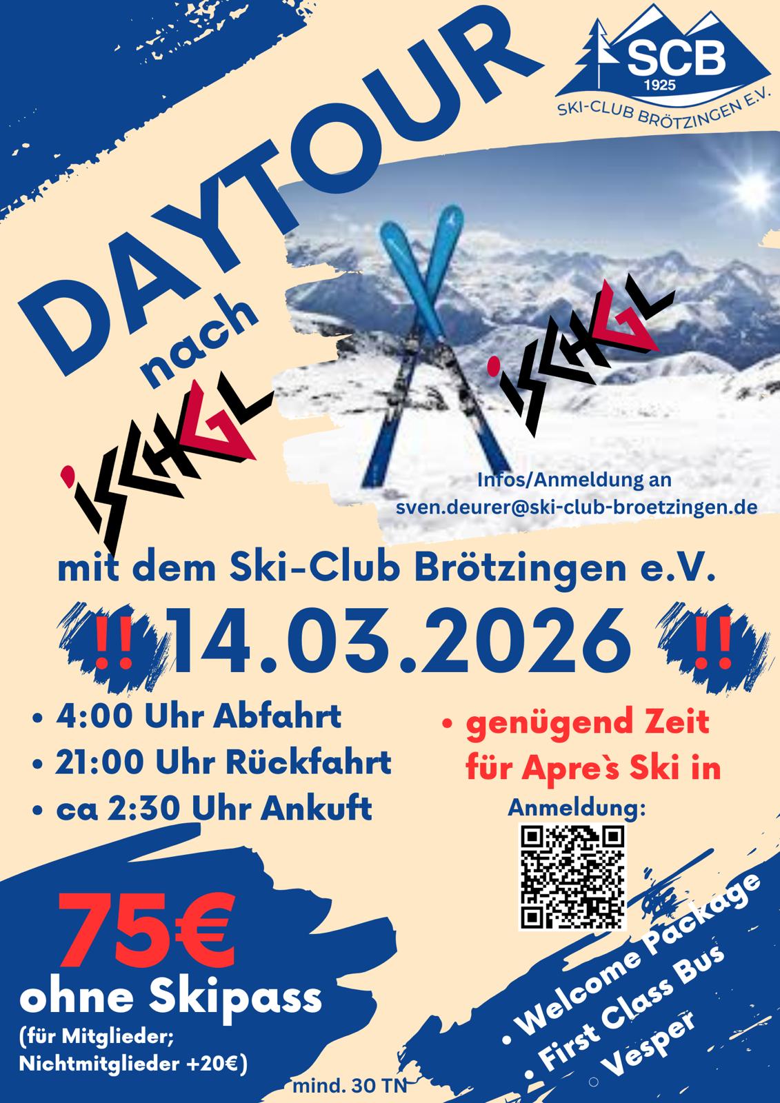 Für dringende Anfragen, bitte eine E-Mail an: info@ski-club-broetzingen.de